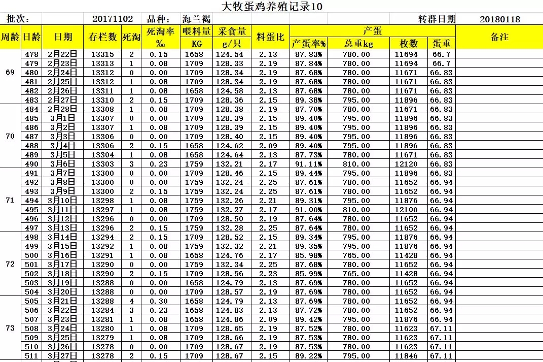 三、大牧飼養華裕海蘭褐詳細生產數據