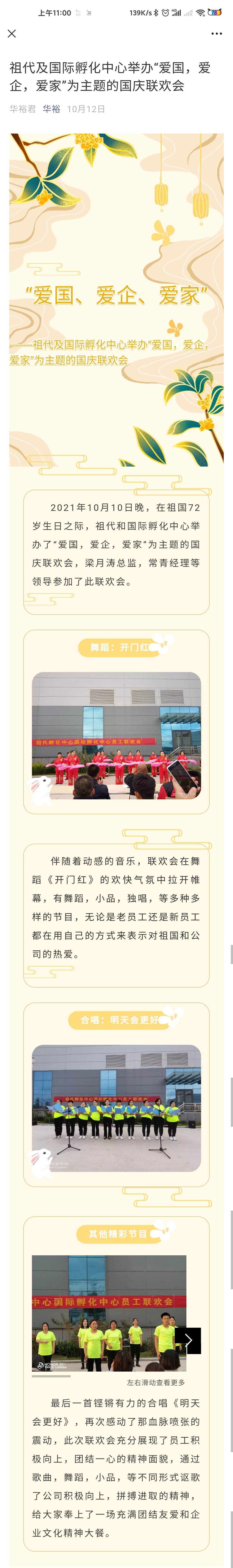 祖代及國(guó)際孵化中心舉辦“愛(ài)國(guó),愛(ài)企,愛(ài)家”為主題的國(guó)慶聯(lián)歡會(huì)