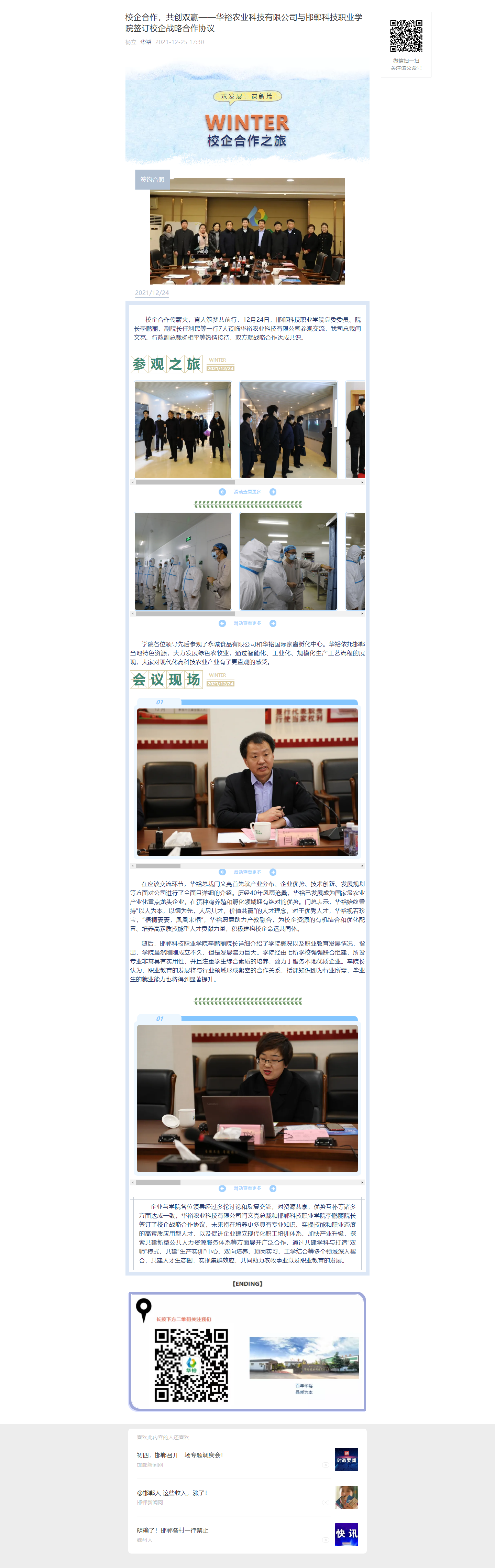 12.25校企合作,共創雙贏——華裕農業科技有限公司與邯鄲科技職業學院簽訂校企戰略合作協議